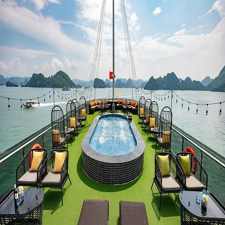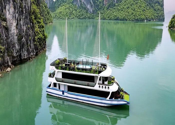 Отель Du Thuyen 3 Sao - Tham Vinh Ha Long Daily - Be Suc - Buffet - Mai находится приблизительно в 4 км от Небесной обители и предоставляет гидромассажную ванну и сад.